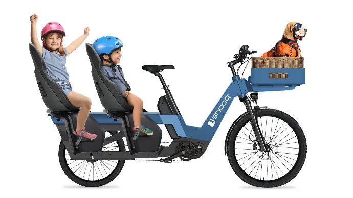 Notre SNOOQ James a été conçu pour transporter le plus de charge et de volume possible. Malgré sa longueur, le James est étonnamment facile à conduire et à manœuvrer. Grâce à la longueur de l'arrière, deux sièges pour enfants peuvent être facilement installés sur le porte-bébé. N'hésite pas à emmener tes enfants pour un essai!