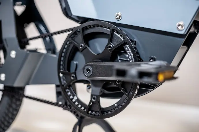Sorgenfreies fahren dank Qualiäts-Anbauteilen. Bosch Cargoline Motor, stufenlose Enviolo-Schaltung und Gates Riemenantrieb sorgen für lange Warungsintervalle und sorgenfreies Fahren.